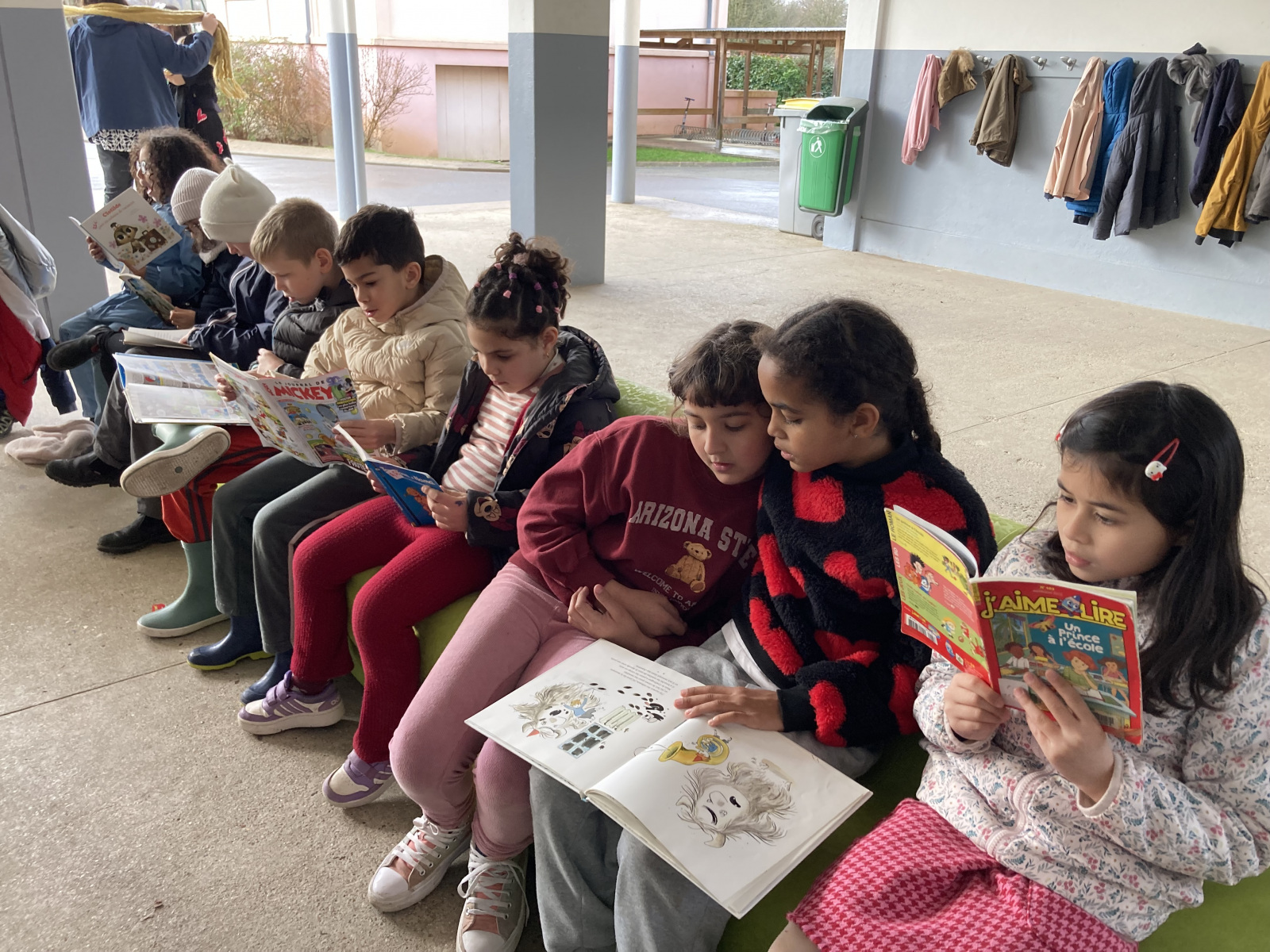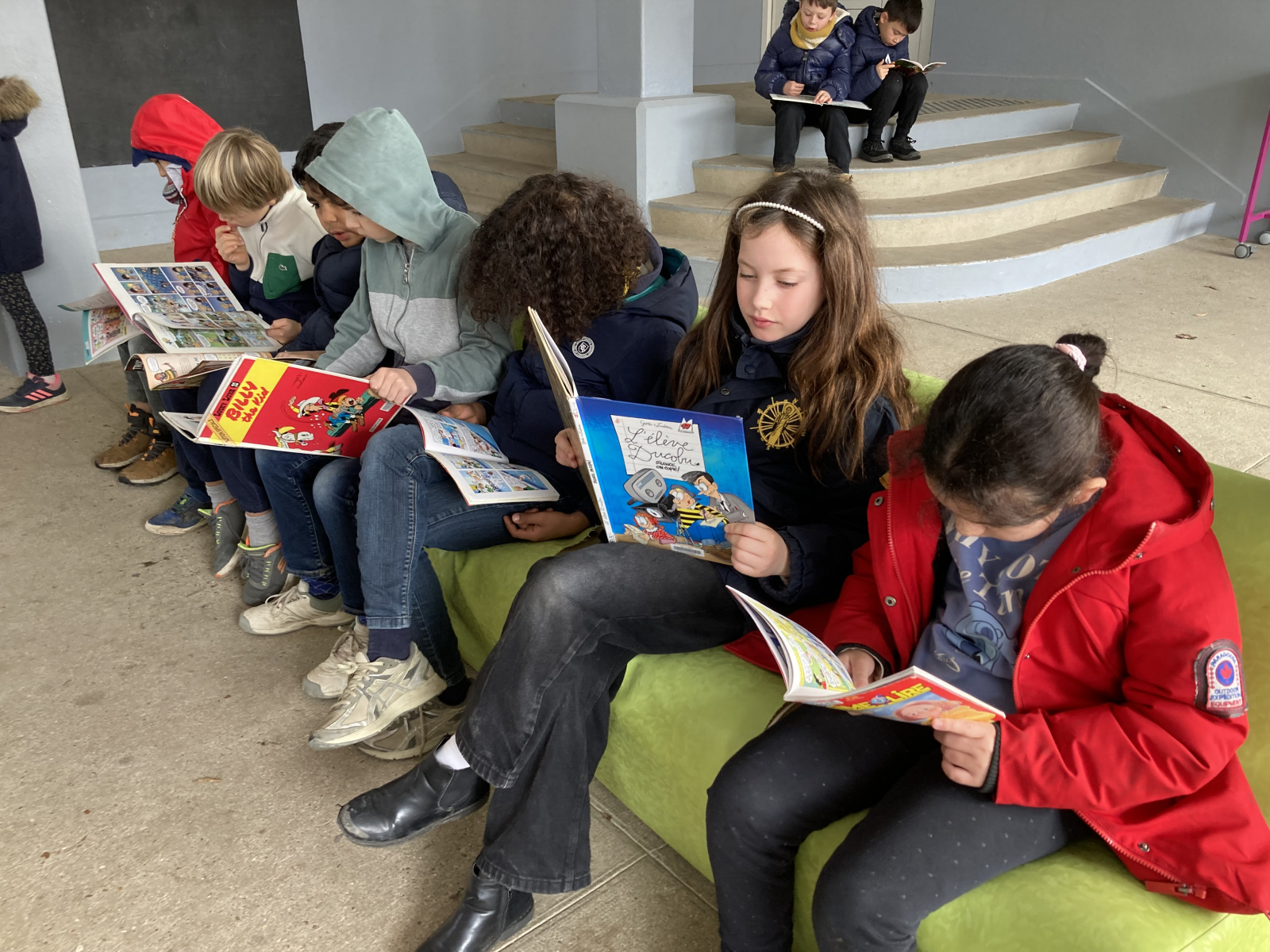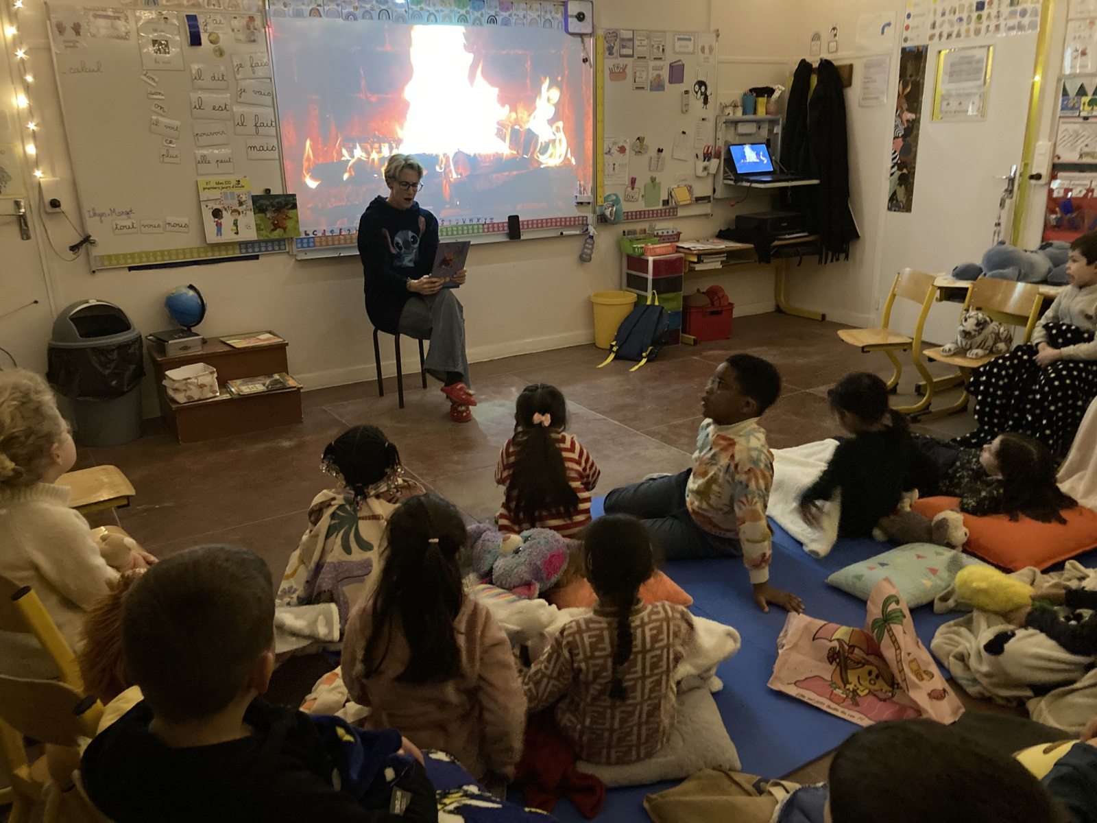 Dans les différentes classes, les enfants ont pu s’installer confortablement au sol, s’allonger et profiter d’un moment calme autour des histoires. Les enseignants, mais aussi certains élèves, ont pris plaisir à lire et raconter des histoires aux autres.