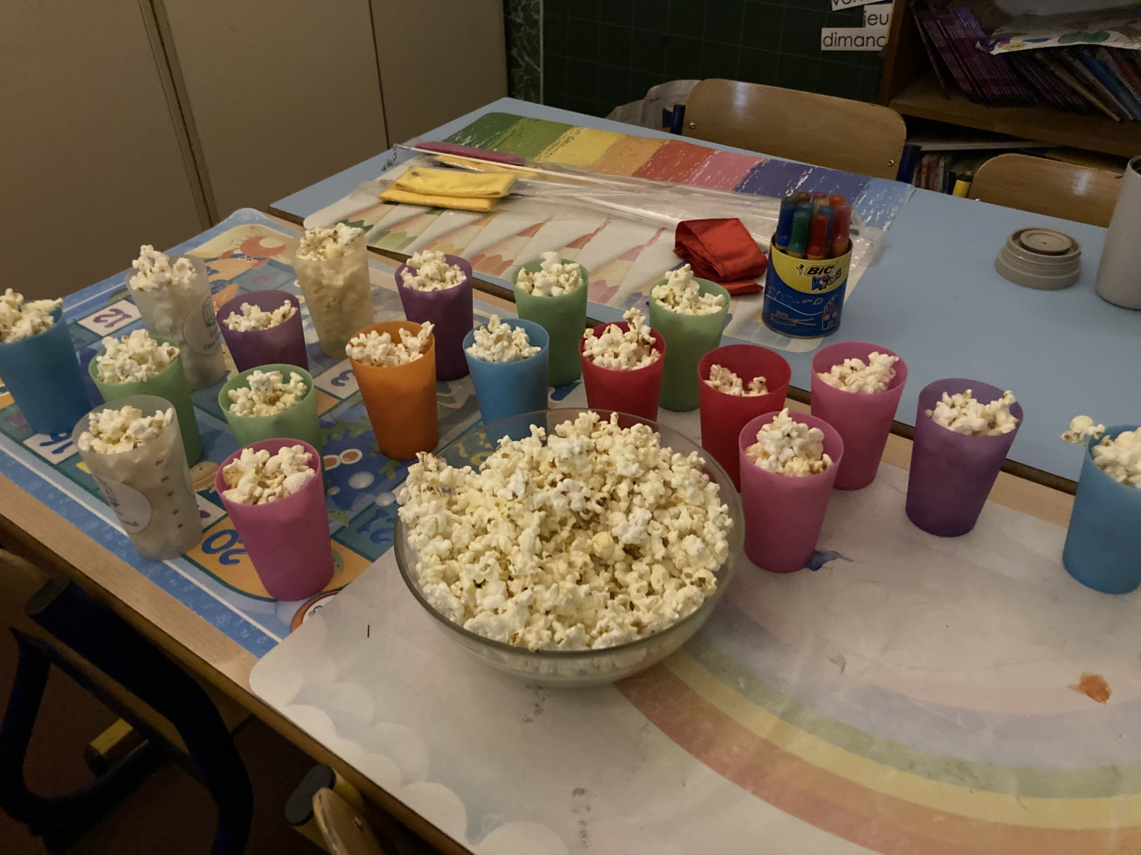 De petites lumières avaient été installées dans toute l’école afin de créer une ambiance chaleureuse et cocooning, transformant les classes en véritables petits coins de lecture.