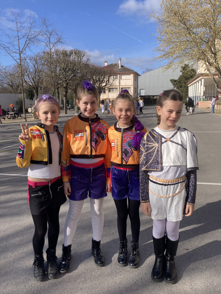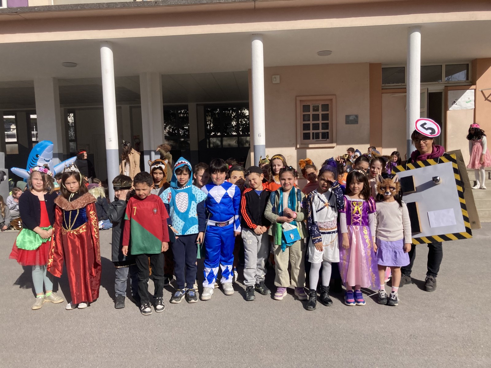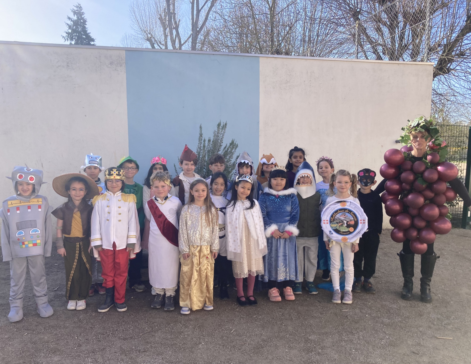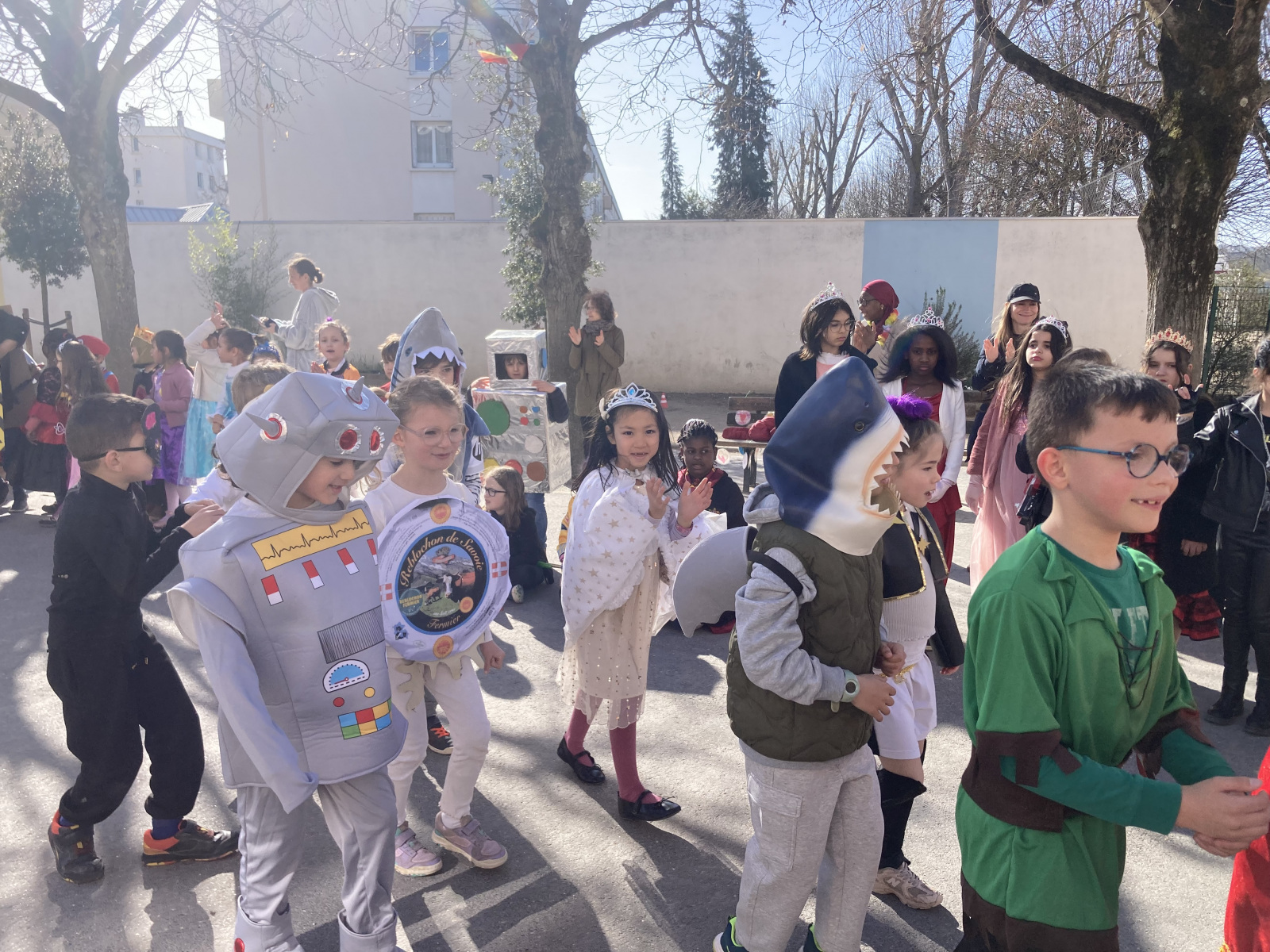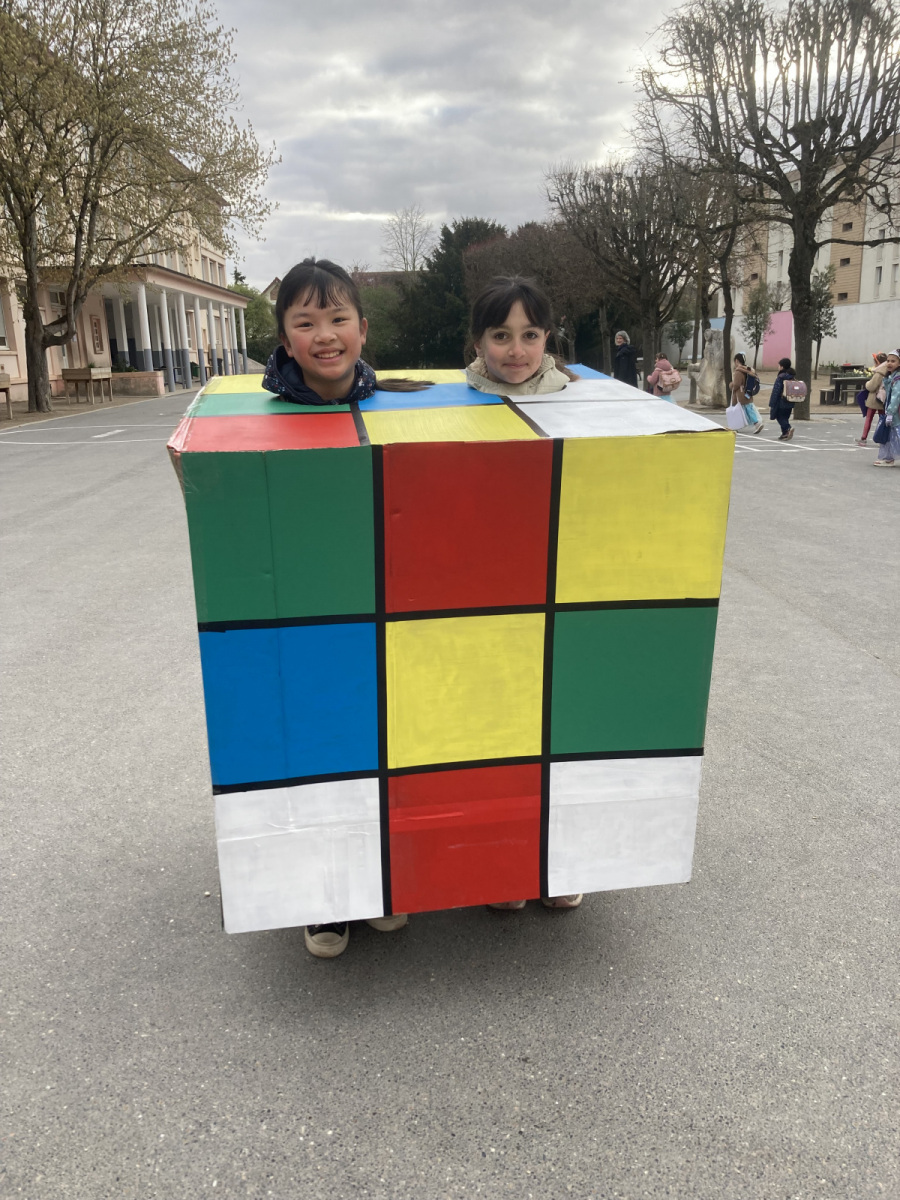 Avant les vacances, la lettre R avait été tirée au sort : chaque enfant devait donc imaginer un costume commençant par cette lettre. Le résultat a été aussi surprenant qu’original ! Dans la cour de récréation, nous avons vu défiler une multitude de personnages et d’idées inventives : des Rubik’s cubes, des rois et des reines, des renards, des robots, du raisin, du reblochon, des requins, des rock stars et bien d’autres costumes encore, tous plus créatifs les uns que les autres.