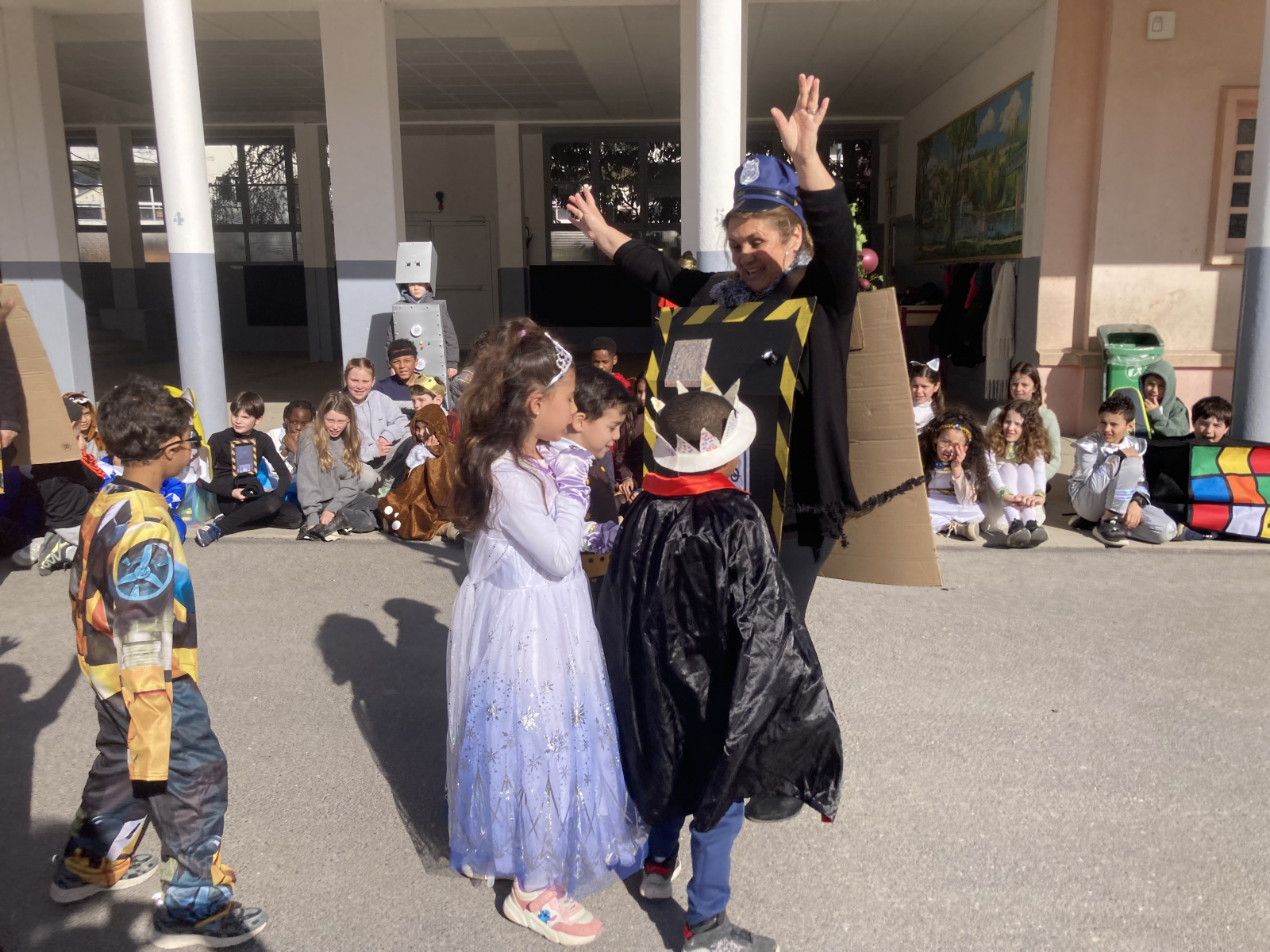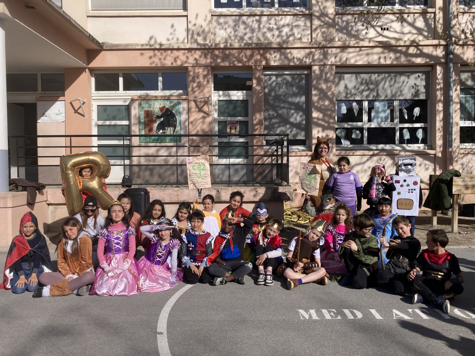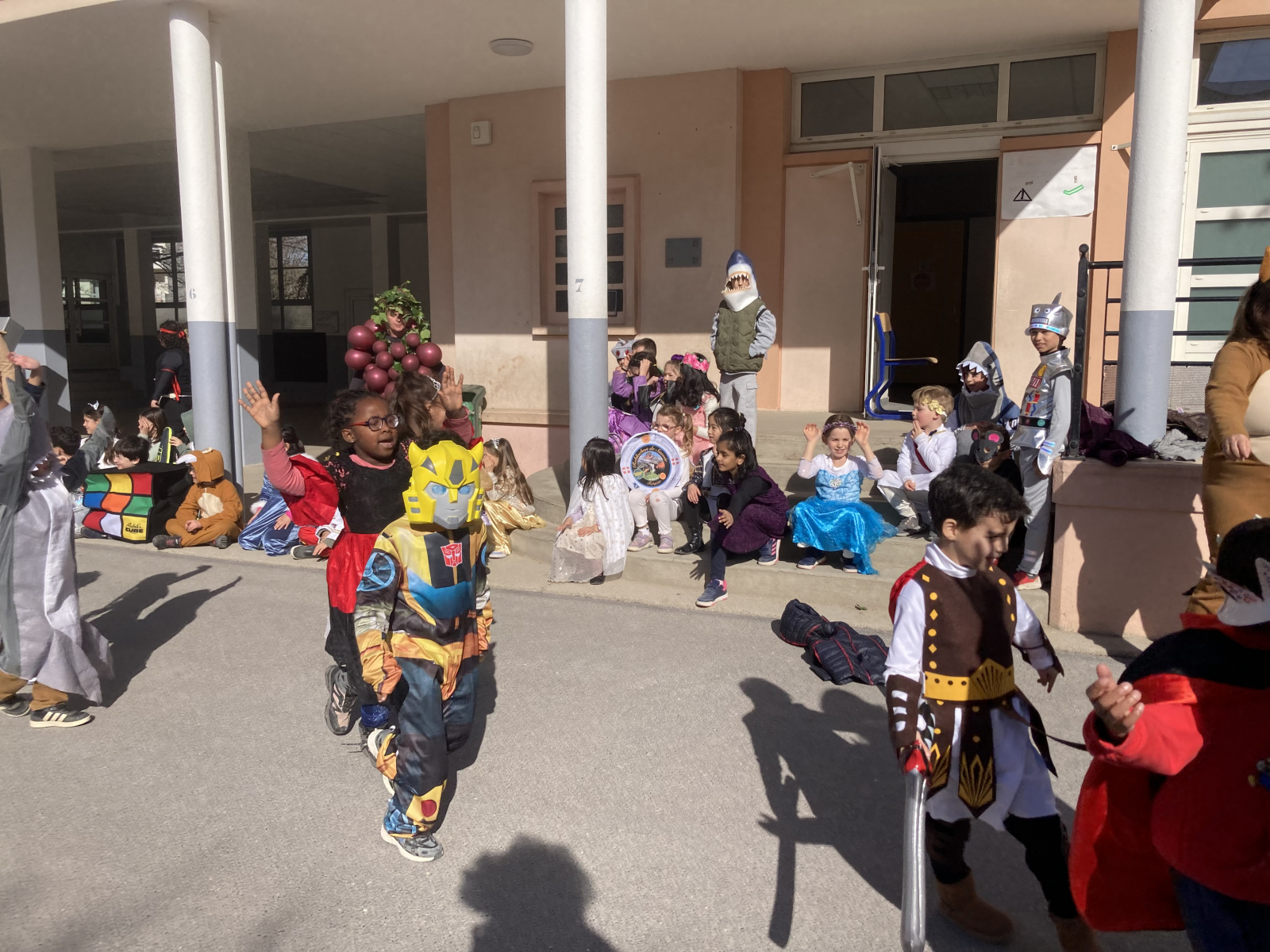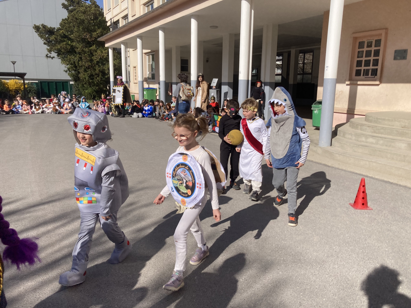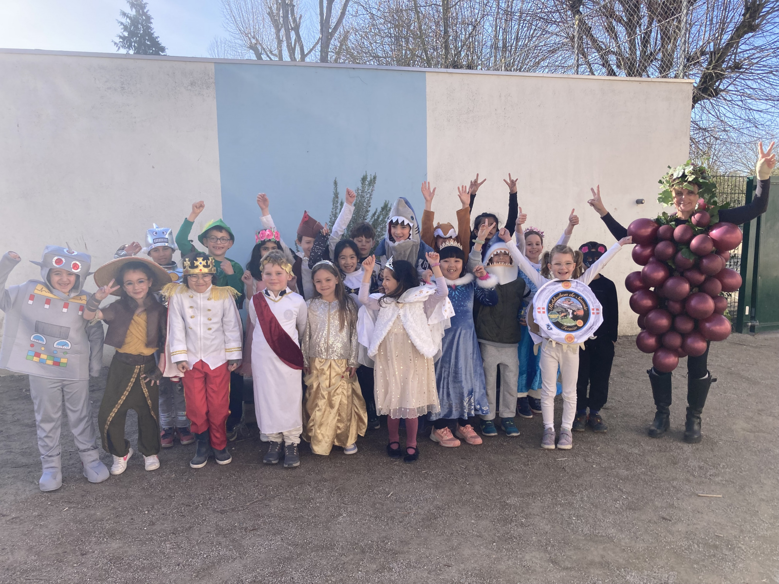 Avant les vacances, la lettre R avait été tirée au sort : chaque enfant devait donc imaginer un costume commençant par cette lettre. Le résultat a été aussi surprenant qu’original ! Dans la cour de récréation, nous avons vu défiler une multitude de personnages et d’idées inventives : des Rubik’s cubes, des rois et des reines, des renards, des robots, du raisin, du reblochon, des requins, des rock stars et bien d’autres costumes encore, tous plus créatifs les uns que les autres.