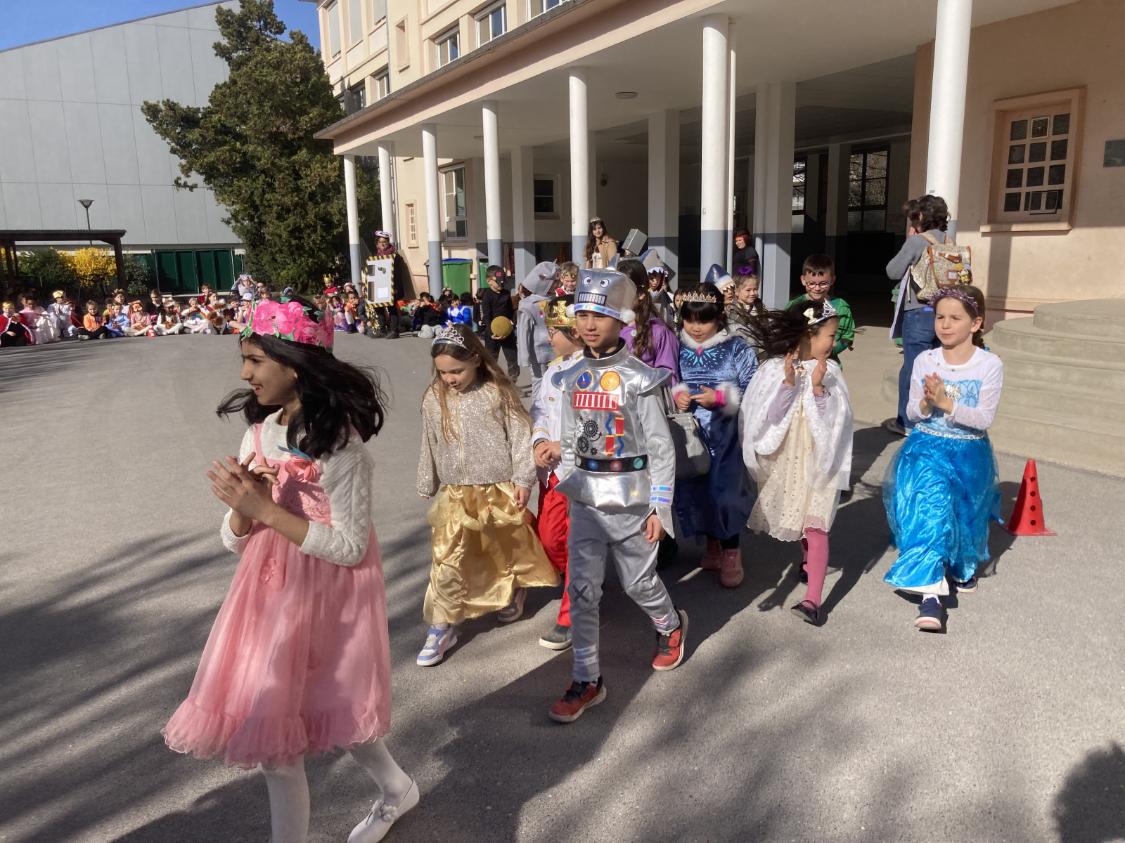 La matinée a été marquée par un superbe défilé dans la cour de récréation, où chaque classe a pu présenter ses costumes dans une ambiance joyeuse et colorée. Les enfants étaient fiers de montrer leurs créations et ont partagé un moment festif tous ensemble.