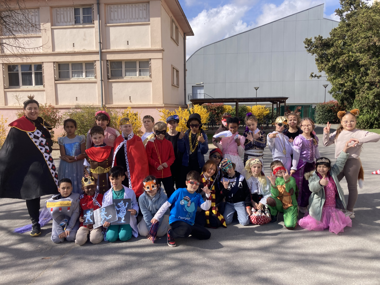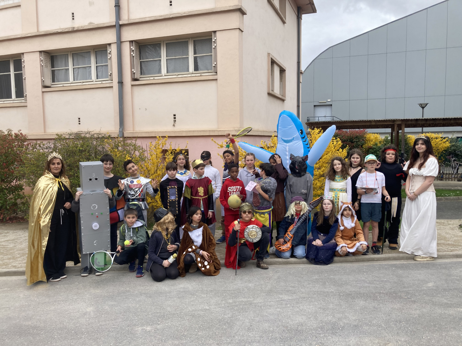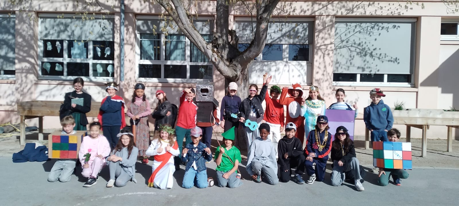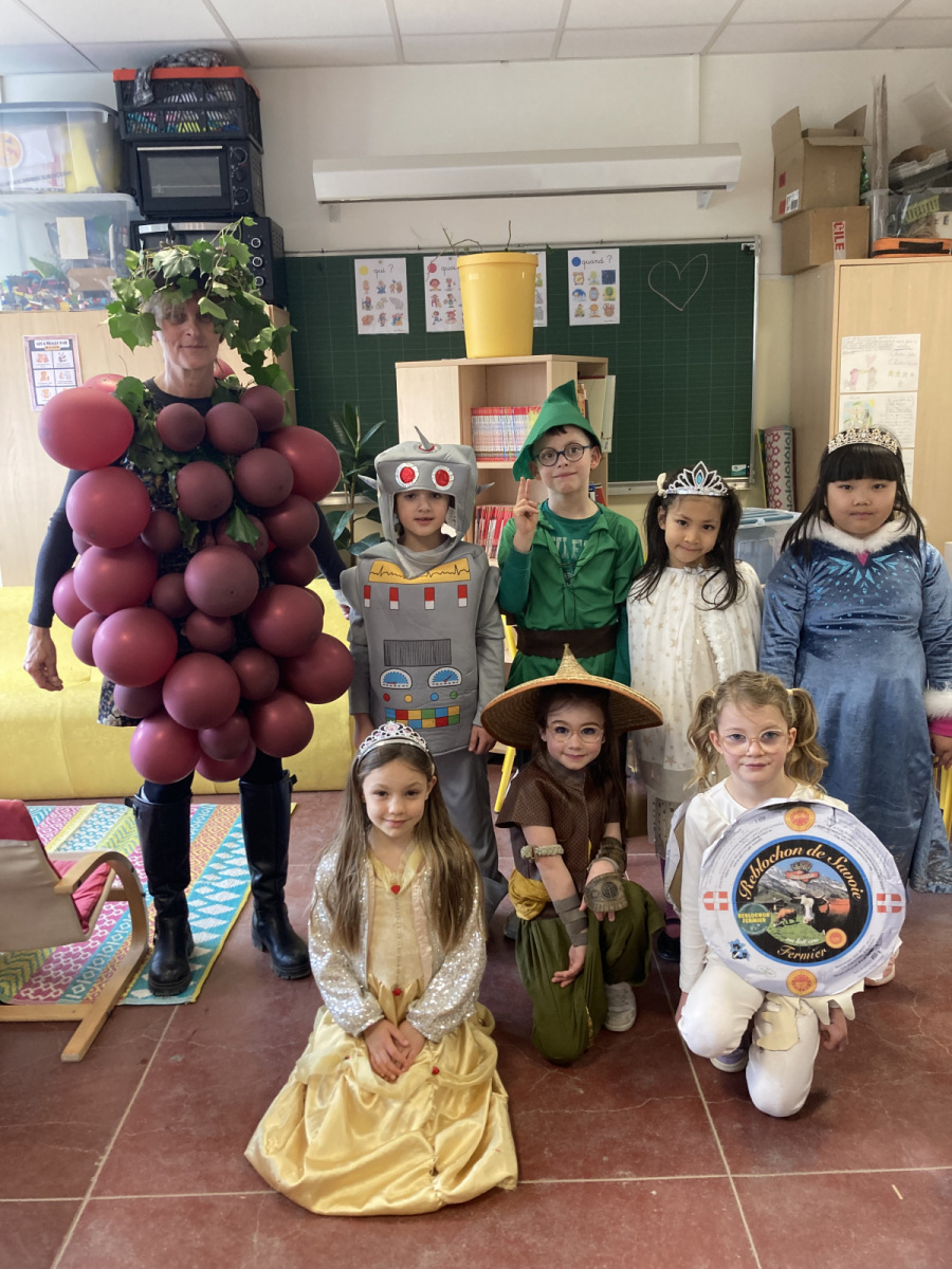 Avant les vacances, la lettre R avait été tirée au sort : chaque enfant devait donc imaginer un costume commençant par cette lettre. Le résultat a été aussi surprenant qu’original ! Dans la cour de récréation, nous avons vu défiler une multitude de personnages et d’idées inventives : des Rubik’s cubes, des rois et des reines, des renards, des robots, du raisin, du reblochon, des requins, des rock stars et bien d’autres costumes encore, tous plus créatifs les uns que les autres.
