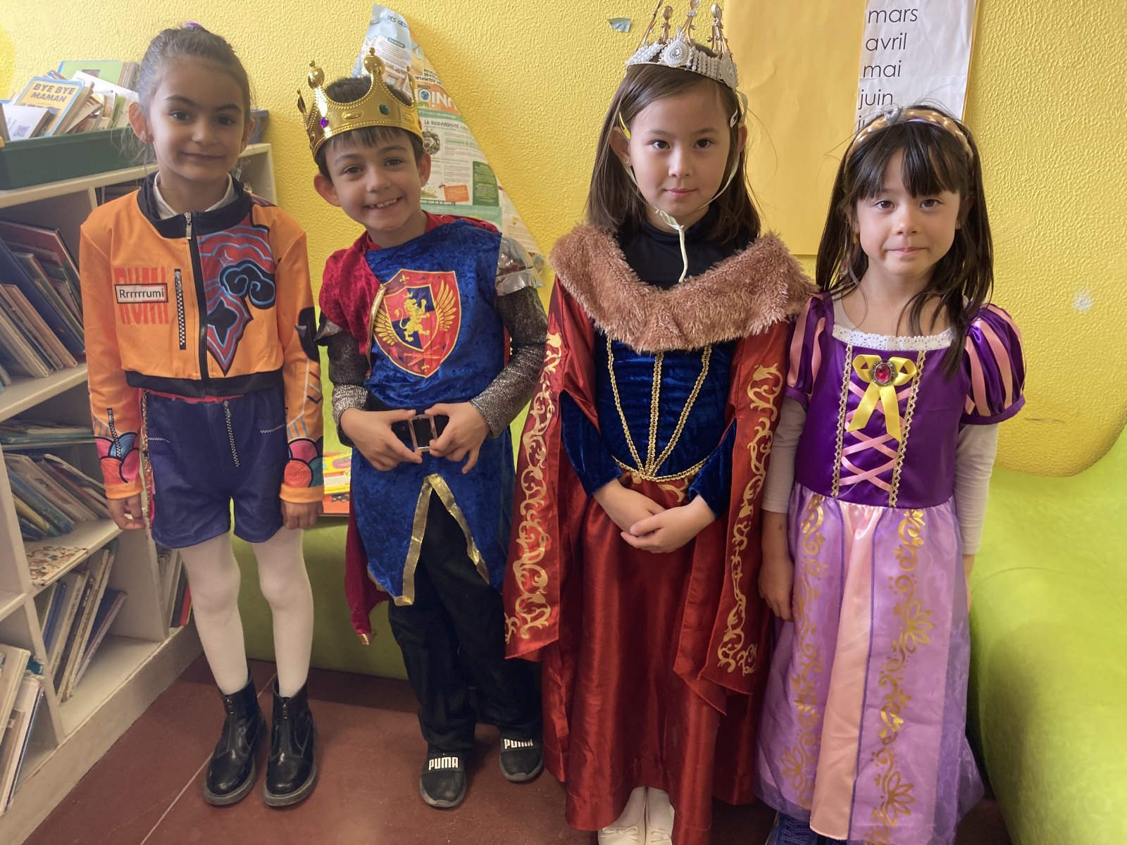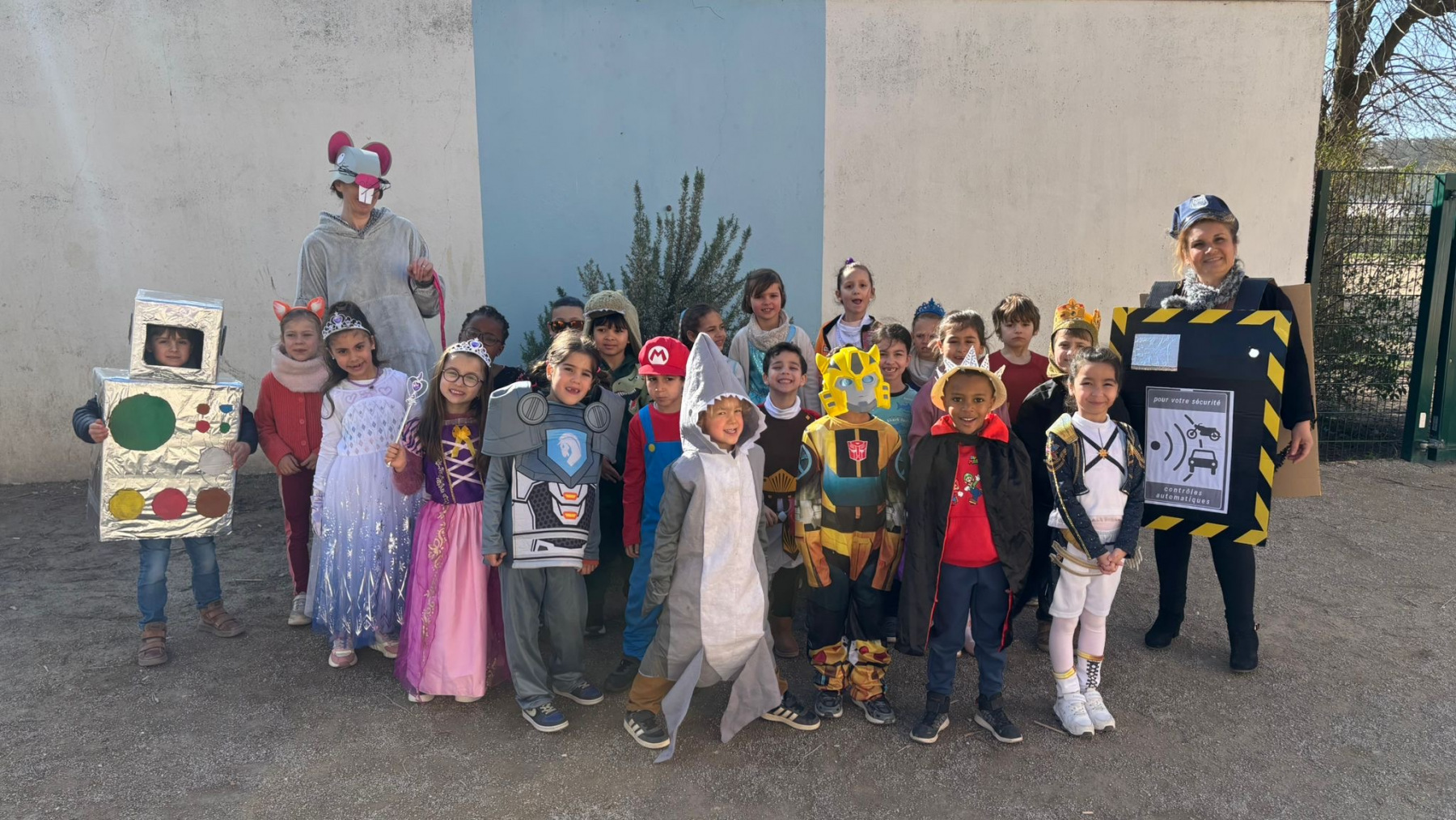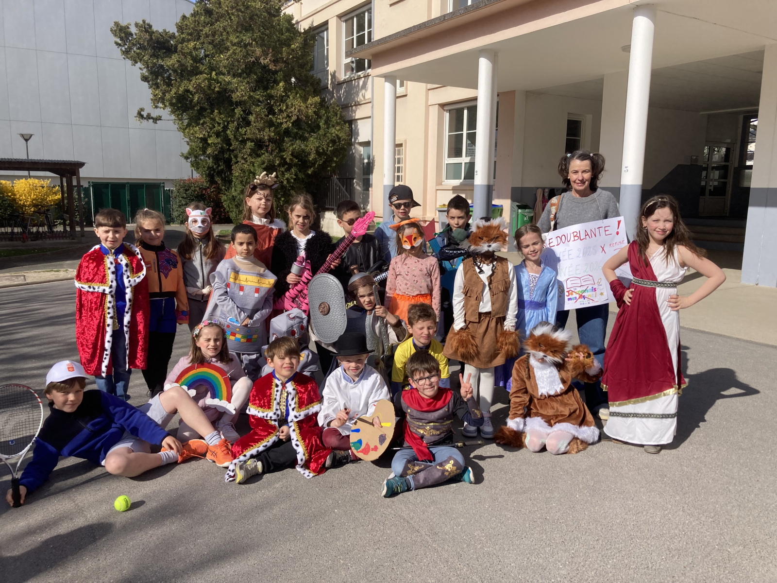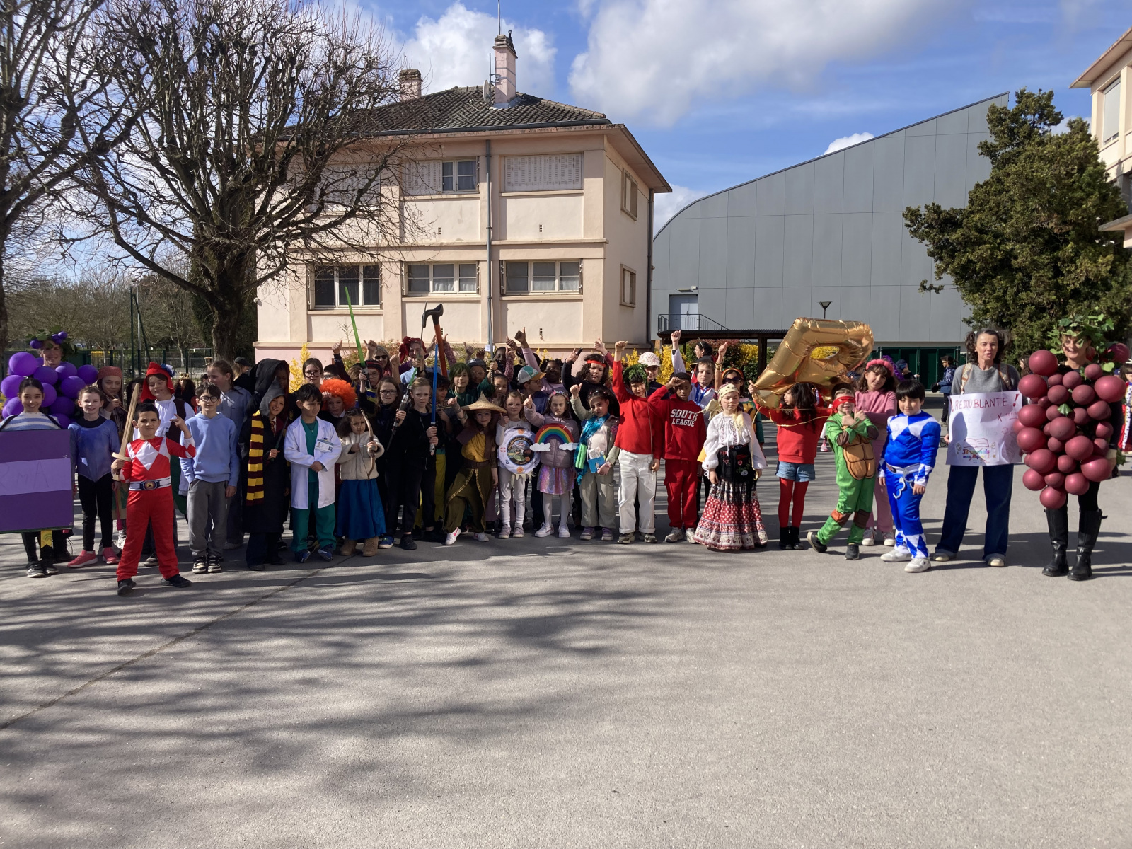 Avant les vacances, la lettre R avait été tirée au sort : chaque enfant devait donc imaginer un costume commençant par cette lettre. Le résultat a été aussi surprenant qu’original ! Dans la cour de récréation, nous avons vu défiler une multitude de personnages et d’idées inventives : des Rubik’s cubes, des rois et des reines, des renards, des robots, du raisin, du reblochon, des requins, des rock stars et bien d’autres costumes encore, tous plus créatifs les uns que les autres.
